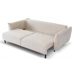 Kanapa jest bardzo funkcjonalna ze względu na możliwość przekształcenia jej w wygodne łóżko z dużą powierzchnią spania, bo aż 145x200 cm. Dodatkowym atutem jest obszerny pojemnik na pościel, koce i inne przedmioty, dzięki czemu można zachować ład i porządek w pomieszczeniu.