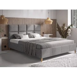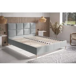 Trwały stelaż drewniany wykonany z listew sprężynujących osadzonych na drewnianej ramie. Wezgłowie jest delikatnie szersze niż boki. Cienkie boczki 2 cm pozwolą na zmieszczenie łóżka w małych sypialniach w których jest ograniczona przestrzeń. Duży wybór tkanin daje możliwość dobrania odpowiedniej struktury i koloru materiału najbardziej odpowiadającej do wystroju wnętrza.