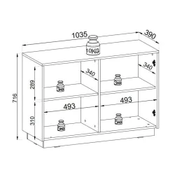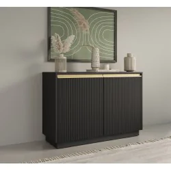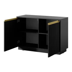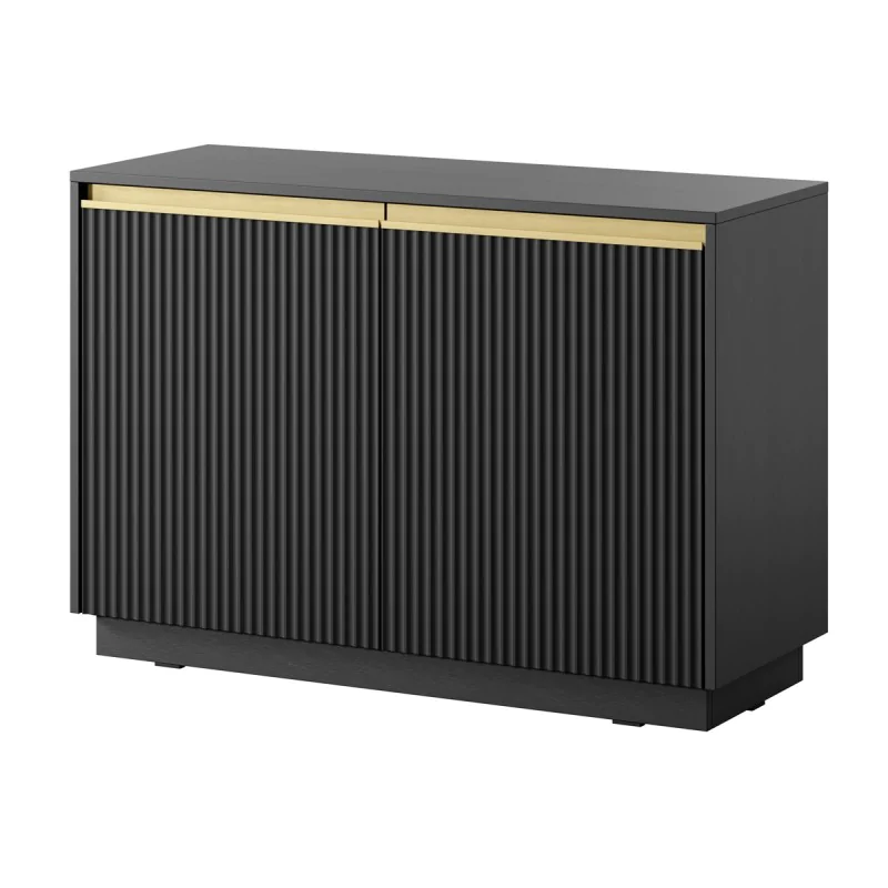 Komoda ROY to ozdoba każdego pomieszczenia w Twoim domu. Frezowane fronty w połączeniu ze złotym uchwytem tworzą niepowtarzalny wygląd. Dwie pojemne szafki pomieszczą wszystkie niezbędne przedmioty. Mebel wykonany został z wysokiej jakości materiałów, które zapewniają trwałość i wytrzymałość podczas użytkowania.