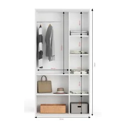 Jej charakterystyczne cechy to funkcjonalność i jakość. Szafa wyposażona została w liczne półki i drążek na wieszaki.